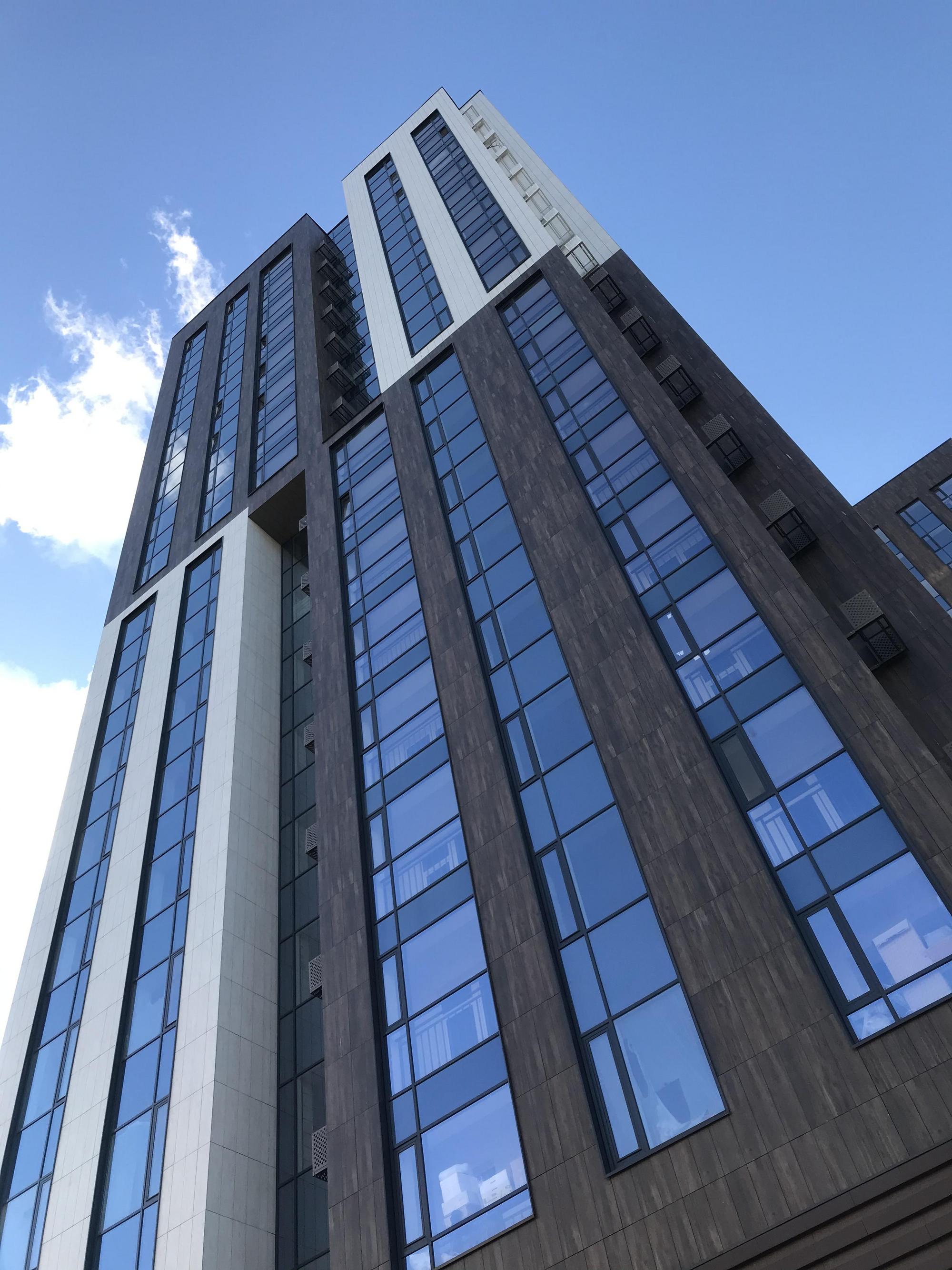 материалов. Для облицовки высотной части секций используются керамогранит, стемалит и остекление лоджий в системе алюминиевых