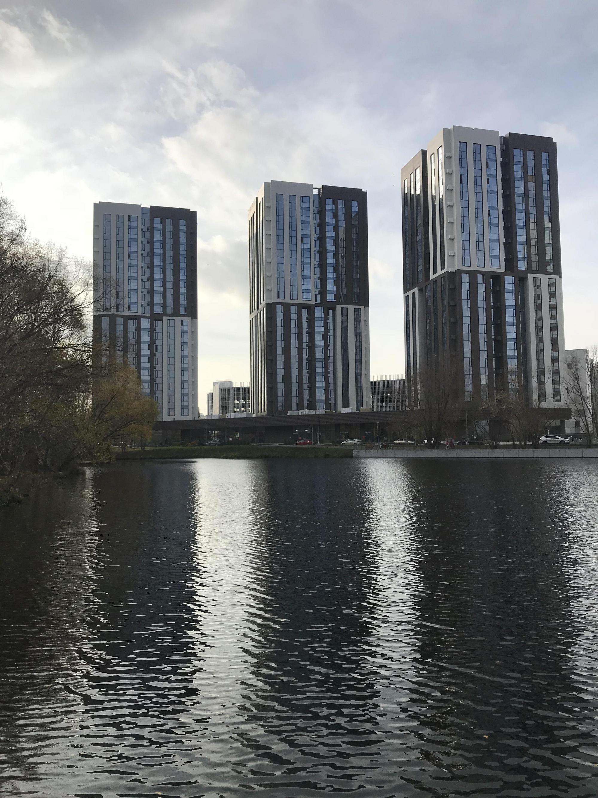 РЕШЕНИЕ — вместо запланированного протяженного корпуса, растянутого вдоль реки, мы разместили на общем стилобате три башни, развернув их таким образом, чтобы обеспечить наилучшие видовые характеристики из всех окон